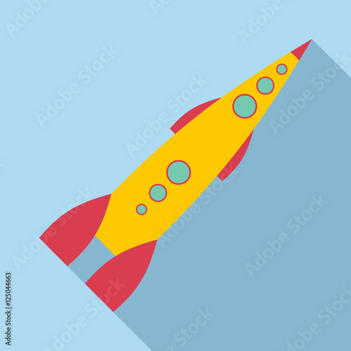 Yellow rocket icon. Flat illustration of yellow rocket vector icon for web