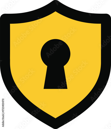 Yellow shield with black keyhole icon symbolizing security