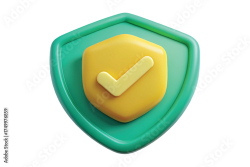 Yellow Shield With Green Checkmark security protection