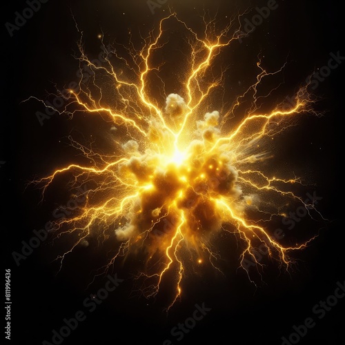 Yellow thunder and electricity light isolated on a black background