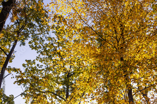 Yellow tree leaves in October.
