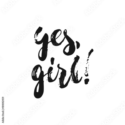 Yes, girl - hand drawn lettering phrase about feminism isolated on the white background. Fun brush ink inscription for photo overlays, greeting card or print, poster design.