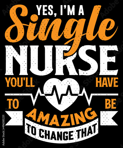 YES, I’M A SINGLE NURSE YOU'LL HAVE TO BE AMAZING TO CHANGE THAT T-shirt design with editable typography vector graphic