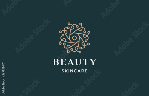 Yoga studio logo. Wellness health spa line icon. Meditation symbol. Zen harmony balance flat vector.