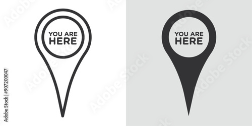 You are Here Pointer Icon Black line art vector logo set