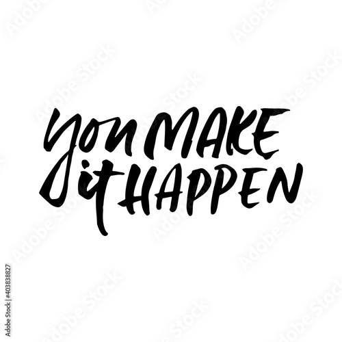 You make it happen. Modern dry brush lettering. Vector illustration.
