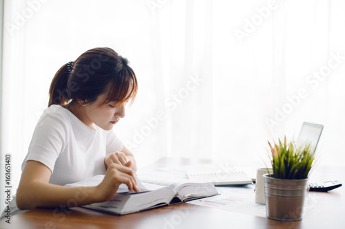 Young Asia woman reading a book in the office