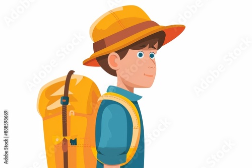 Young boy with backpack outdoor adventure modern vector art stylish illustration vibrant colors detailed vector design youthful explorer contemporary outdoor art