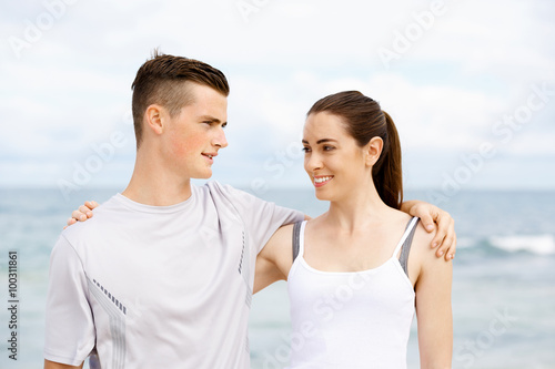 Young couple looking at each other on beach