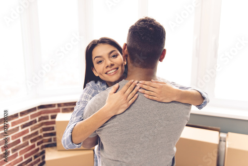 Young couple moving
