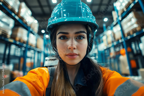 Young European woman operator Counterbalance Forklift.at industrial warehouse.