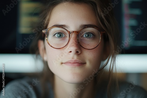 Young Female Programmer Focused on Coding