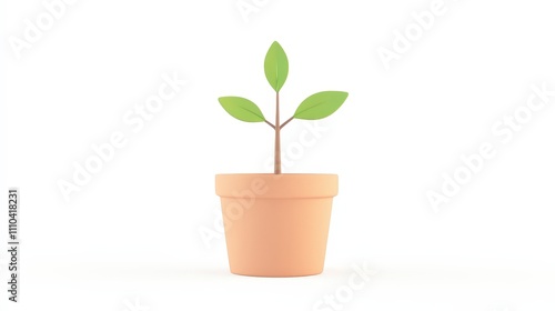 Young Green Plant Growing in Simple Clay Pot on White Background