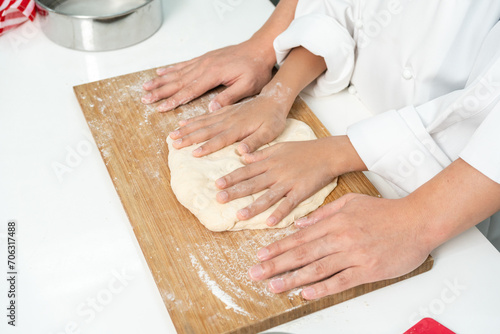 Young handsome asian man chef cooking breakfast in the kitchen. Happy asian man preparing food with ingredient. Chef in uniform in the kitchen.