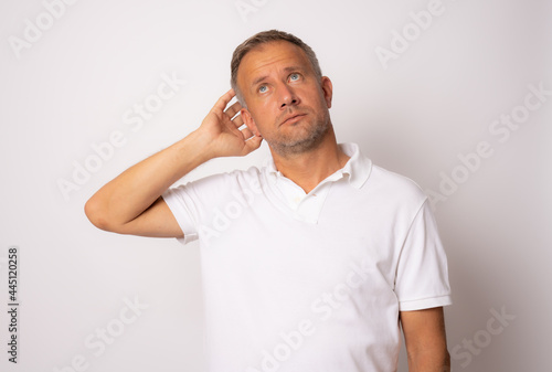Young handsome man wearing casual clothes over isolated background confuse and wonder about question.