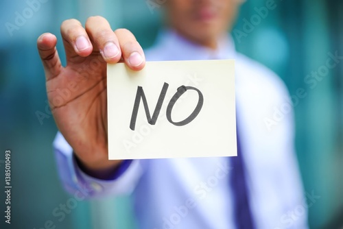 Young hispanic man with serious expression holding no reminder paper at the city.