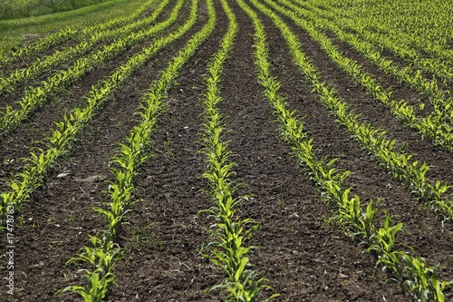 Young maize plants on a field, cultivation for biogas, Upper Swabia, Baden-Wuerttemberg, Germany, Europe