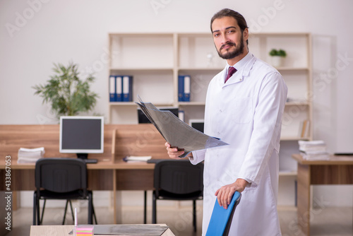 Young male doctor radiologist sitting in the office