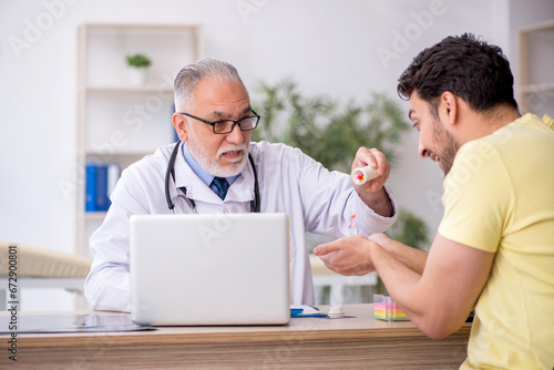 Young male patient visiting old male doctor