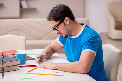 Young male student studying at home