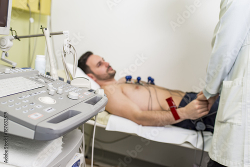 Young man doing EKG in hospital