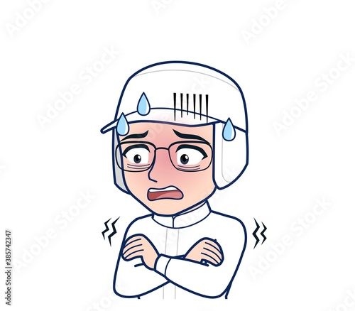 young man in white hygienic clothes