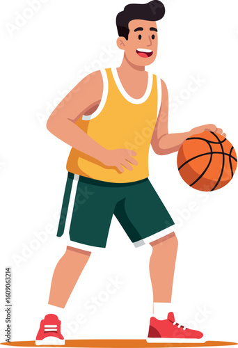 Young man playing basketball dribbling ball in sportswear casual active lifestyle vector illustration