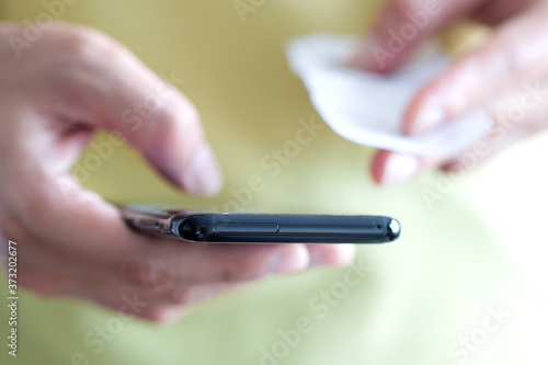 Young man sat in the living room on sofa , using his phone, a smartphone and holding credit card her online To buy product in the internet