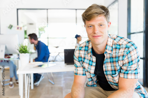 Young man sitting and looking at camera in office