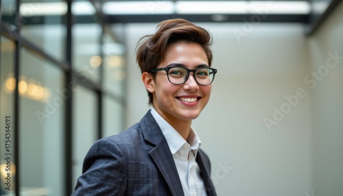 Young Startup Founder with Glasses and a Confident Smile, Optimized for Photo Use, Ethereal Light
