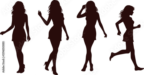 Young woman black silhouette vector, Simple silhouette Design vector icon with white background. Woman standing