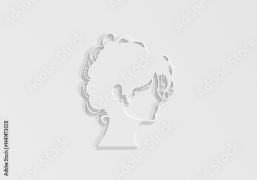 Young woman face side view icon. Elegant silhouette of a female head. Avatar profile sign. 3D render