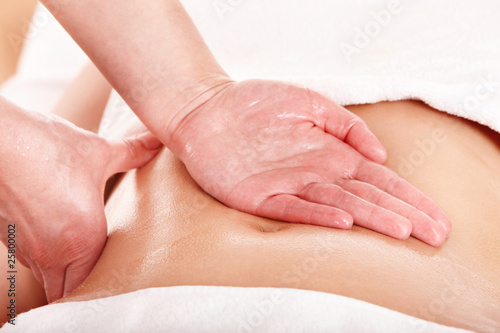 Young woman having stomach massage.