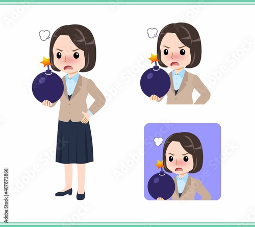 Young woman in beige suit