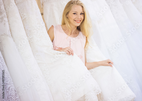 Young woman in dress shop