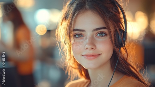 Young woman with headset in a modern office