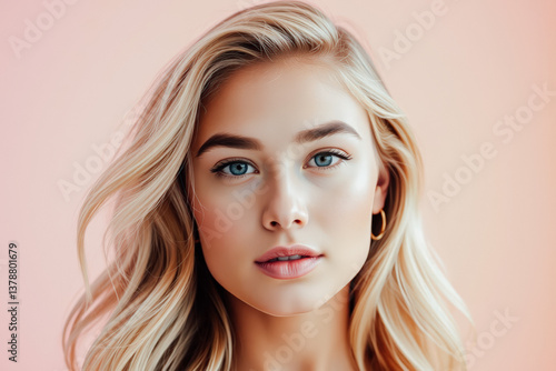 Young Woman with Long Blonde Hair and Blue Eyes