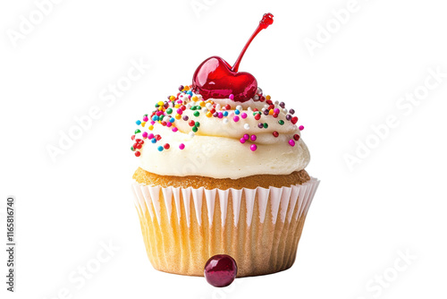 Yummy Cupcake with Decorative Sprinkles Isolated on Transparent Background