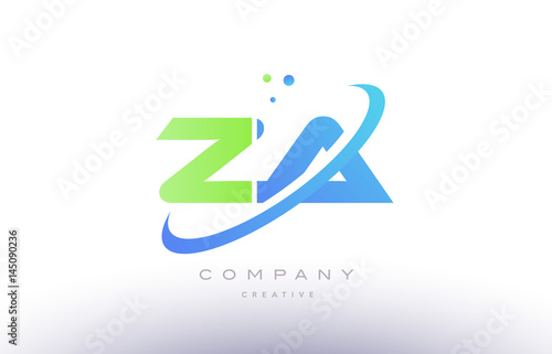 za z a alphabet green blue swoosh letter logo icon design