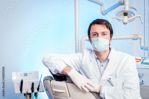 zahnarzt sitzt auf seinem behandlungsstuhl