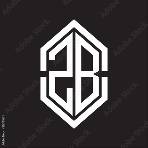ZB Logo monogram with hexagon shape and outline slice style with black and white