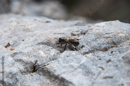 zdjęcie przedstawiające pszczołę w górach Hiszpanii w słońcu wiosną