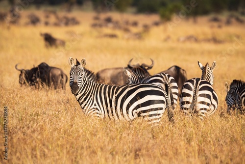 Zebra and Wildebeest Sharing the Golden Savannah Grass, Serengeti, Tanzania