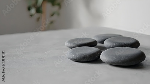 Zen Spa Pebbles on Gray Surface Reflection Smooth Stones Wellness Therapy Natural Tranquil Background
