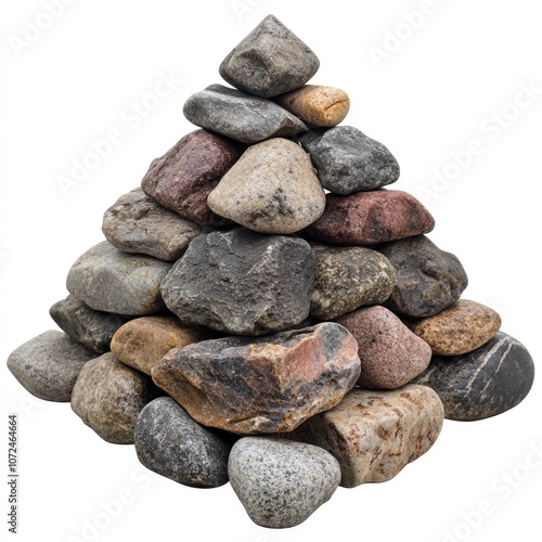 Zen Stone Pyramid on White Background. Harmony and Balance in Nature