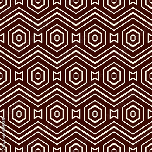 Zigzag seamless pattern. Hexagon mosaic tiles ornament. Ethnic surface print. Repeated geometric figures background. Ornamental wallpaper. Modern geo design digital paper. Vector abstract art