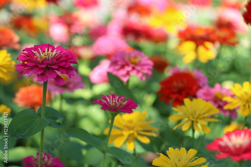 zinnia elegans colorful flowers in the park