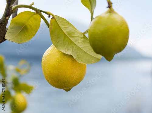 Zitronen am Baum mit Blättern