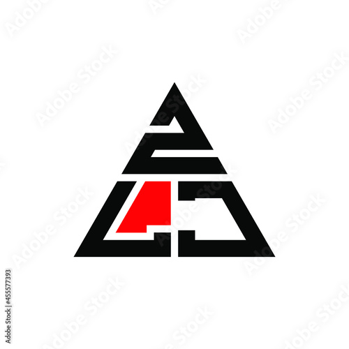 ZLJ triangle letter logo design with triangle shape. ZLJ triangle logo design monogram. ZLJ triangle vector logo template with red color. ZLJ triangular logo Simple, Elegant, and Luxurious Logo. ZLJ