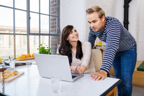 zwei junge leute arbeiten am laptop